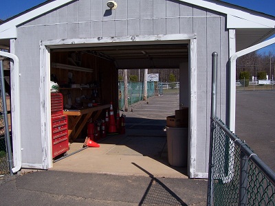 The back section of the scoring tower is a multi-purpose room. It is used to store all the forms and paperwork needed to run the races. The track radios and rental transponders are stored there as well. The other primary use for the room is as a meeting room. Board meetings are held there throughout the summer. The room is also used to set up for special events such as the Kenny Hein Memorial Race.